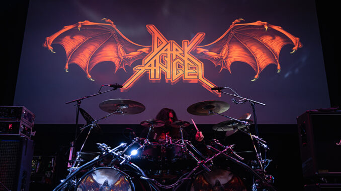 Dark Angel‘s run through New York’s Gramercy Theatre was nothing but electric, as they are in full throttle mode of their North American, Extinction Level Event tour. The crowd was fully dialed in as soon as those riffs of Eric Meyers’s guitar rang through the room as he went right into “Time Does Not Heal“ from their 1991 release. From this point on, there was no stopping the fury of their thrash as the pit was fully engaged. They were reaffirmed in their relevance as they delivered the force.Ron Rinehart wasted no time in interacting with the crowd as he was up on the barricade, and, before you know it, he was on the floor moshing it up in the pit. At times, you would wonder where he went. You would turn around, and he’d be by the soundboard. He was all over the place. The energy was great as bodies were just continuously flying around the pit and over the barricade as the band tore through a vast collection of their archives.