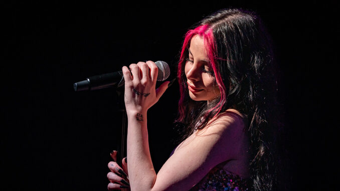 Experiencing Ellise’s live show is a unique pop music experience. Ellise’s performance at Motorco Music Hall was like walking into and spending an hour within an empowered, melancholy mood. Everything from lighting to costume to music and lyrics came together and pulled the audience into experiencing “dark pop” rather than being a witness to a performance. Quite like becoming enchanted by a magical woman, the audience swayed and sang as if everyone were experiencing the same dream. Both powerful and eerie, Ellise’s set was a captivating experience. Ellise’s mid-tempo songwriting and highly emotional lyrics influenced dancing into rhythmic swaying and required singing as opposed to a scream-along, which other pop artists experience from their fans.Performing on a stage lit by a rainbow created by red and purple lights intermingling, Ellise’s confidence was evident from the start. “KEROSENE” from her 2025 album Pretty Evil Deluxe opened the set, locking in the room’s attention. Moving between vocally breathy and commanding personas throughout the set, songs such as “bite,” “KILL4ME,” and her latest single, “Sexxxtapes,” Ellise’s sound remained very consistent from song-to-song while still communicating the song’s unique story and message with subtle changes to body language and vocal intensity.