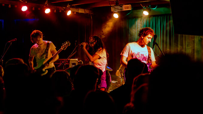 As the anticipation in the room began to peak, English Teacher finally entered onto the stage. They opened their set with the very fitting song, “This Could Be Texas” from their album with the same name. From the very beginning, the band’s energy emanated throughout The Ballroom. The disco ball in the center of the room glinted as the dreamy tune of “Broken Biscuits” played. “Broken Biscuits” was written about Fontaine’s experiences in her hometown, Colne. They performed other songs such as “Albatross” and “You Blister My Paint.”During “Not Everybody Gets to Go to Space,” the crowd settled as Fontaine pulled the crowd in with the spoken song. “Not Everybody Gets to Go to Space” is a commentary on the current class system, implying that the wealthy only appear to have all the power, when in reality , common wealth makes up the majority and could hypothetically control them if they wanted. Towards the end of the set, the band performed a cover of MJ Lenderman’s “She’s Leaving You.”