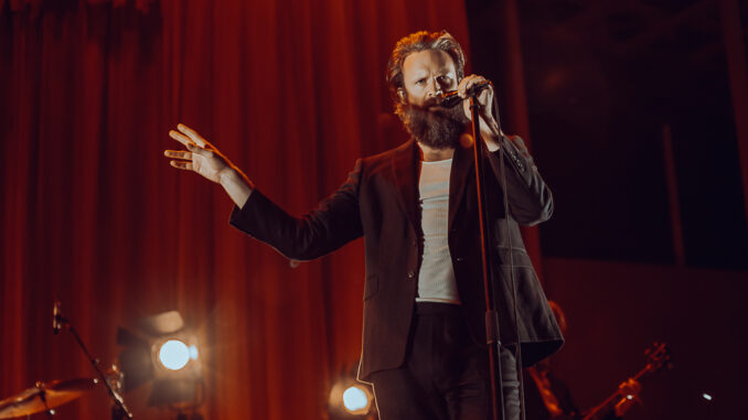 At a little after 8:30 PM, Father John Misty took to the stage. He opened his set with “I Guess Time Just Makes Fools of Us All” from his 2024 album Mahashmashana. Tillman played guitar for the first half of the song before strolling around the stage for the song’s conclusion. Between songs, Father John Misty bantered with audience members. Before starting “Goodbye Mr. Blue,” he warned the audience he might tear up because he missed his dogs, despite it only being day two of their North American leg of tour. He made sure to perform some of his throwback songs, like “Nancy From Now On,” from Fear Fun (2012) and “Chateau Lobby #4 (in C for Two Virgins),” from I Love You, Honeybear (2015).He brought the crowd out of the relaxed vibe by performing “She Cleans Up,” another track from Mahashmashana. “She Cleans Up” tells an absurd story about aliens, murder, and making deals with the devil. The 70s rock-inspired track, along with the flashing light production, was incredible. After a few more songs, Father John Misty left the stage, only to return for a four-song encore. Here, he performed songs “Hollywood Forever Cemetery Sings” and “Holy Shit.” He closed his set with his 2016 single, “Real Love Baby,” which has gained significant popularity on social media recently