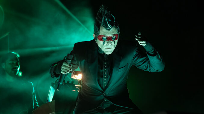 The rhythm section of drummer Gunnar Olsen and bassist Josh Moreau remained the show’s bulletproof backbone of tight, deliberate, and relentless precision. Meanwhile, guitar virtuoso Mat Mitchell delivered sharp, textured riffs that cut through the air with surgical precision, adding his unique blend of creepy tension and melodic bite. Visually, the show was just as compelling. Carefully choreographed movements and multimedia elements created a layered narrative that unfolded song by song, often blurring the boundaries between performer and character. Lighting design shifted from stark, almost sterile, tones to warm, immersive washes, mirroring the emotional trajectory of the band’s set.